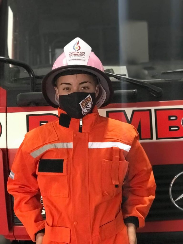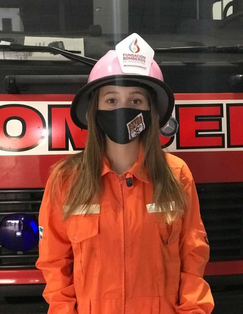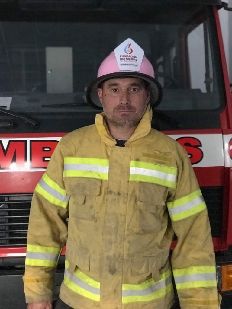 El cuartel de bomberos de la localidad de La Francia también quisieron estar presentes y acompañar en este día luciendo sus cascos color rosa.