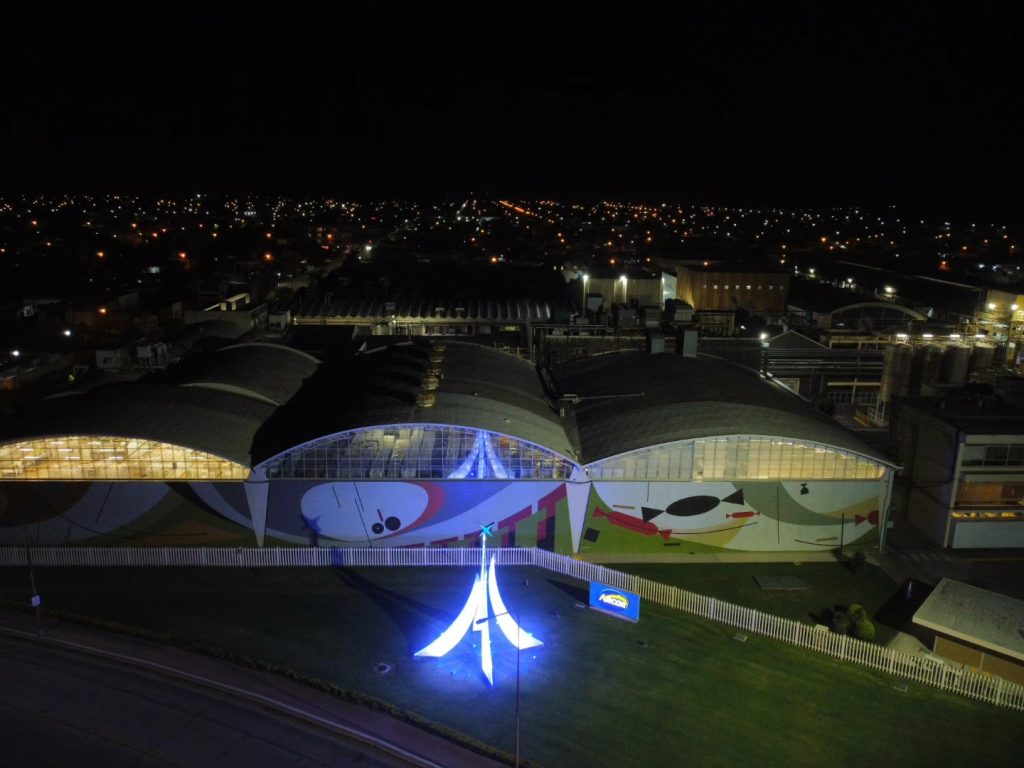 El imponente árbol, instalado en el predio de la empresa, ya se encuentra iluminado y forma parte del paisaje navideño que Arcor aporta a la comunidad.