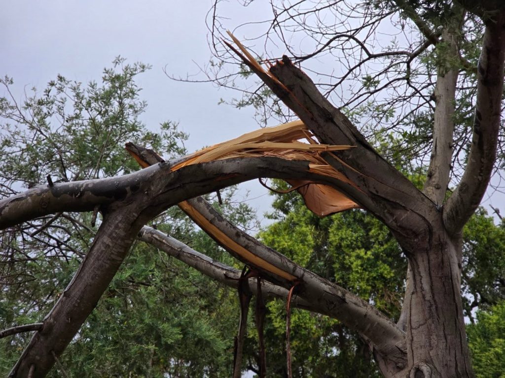El Parque Romero fue uno de los espacios más afectados, con numerosos árboles y ramas caídas según se pudo relevar durante la recorrida por la ciudad.
