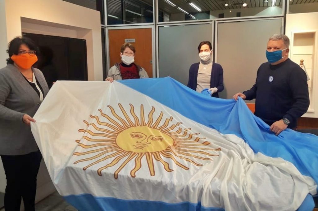 También agradecemos a María Cravero, quien cosió sin cargo la enorme Bandera desplegada en el Edificio Municipal.