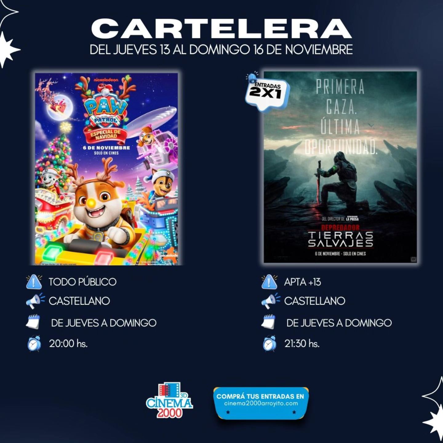 Del jueves 13 al domingo 16 de noviembre, el Cinema 2000 de Arroyito presenta una cartelera ideal para disfrutar en familia o con amigos, con propuestas para grandes y chicos.