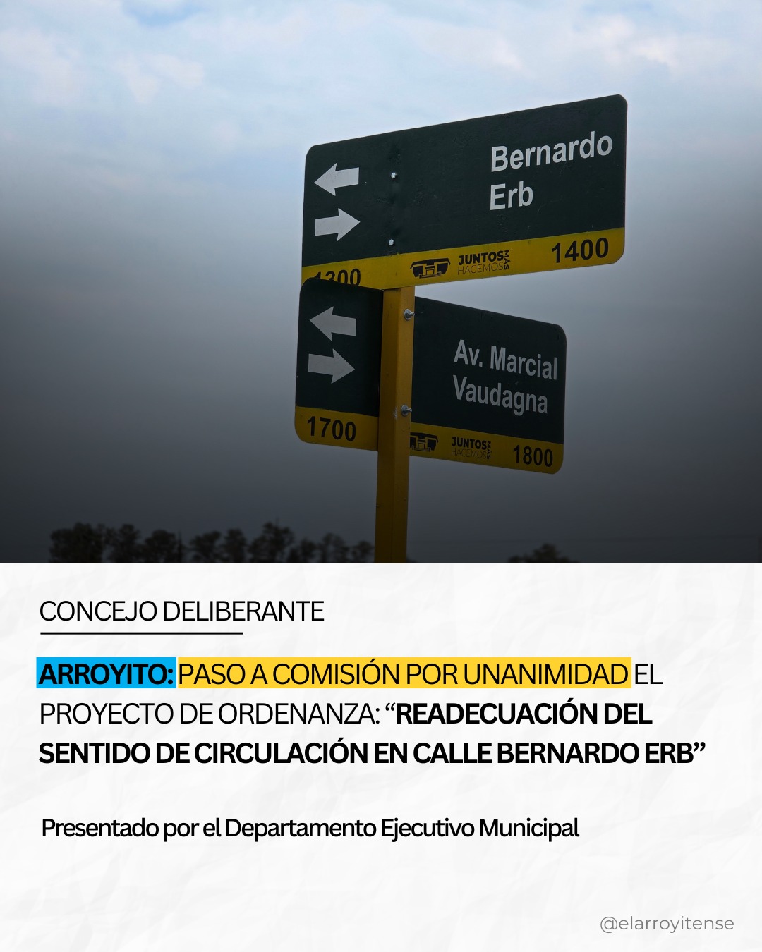 El Concejo Municipal de Arroyito aprobó por unanimidad el pase a comisión del proyecto de ordenanza titulado “Readecuación del sentido de circulación en calle Bernardo Erb”.