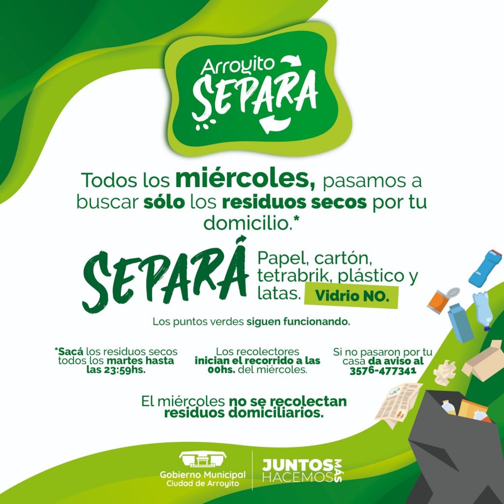 El Gobierno Municipal a través del Área Ambiente busca recordar los puntos más importantes del Programa Arroyito Separa para que los vecinos tengan lo en cuenta.