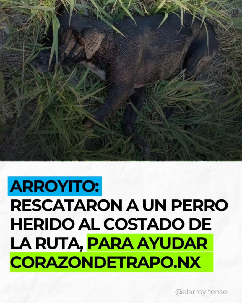 Este lunes por la noche, alrededor de las 20 h, integrantes del grupo Corazón de Trapo recibieron el aviso y una foto de un perro que se encontraba tirado al costado de la ruta, agonizando cerca del puente camino a La Tordilla.
