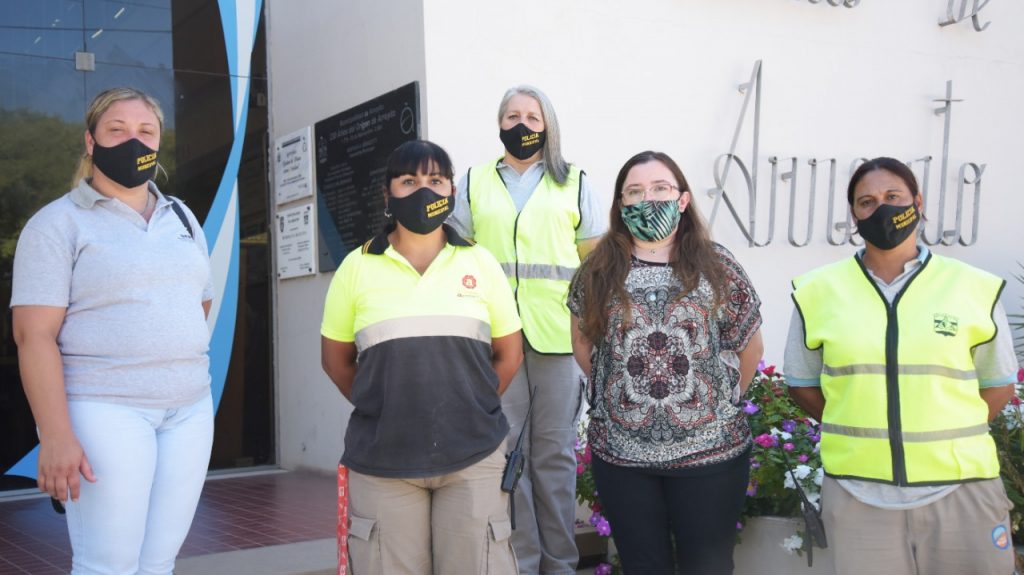 La Intendenta arquitecta Cristina Cravero junto a funcionarios municipales, entregaron un total de 2500 barbijos para niños y niñas de