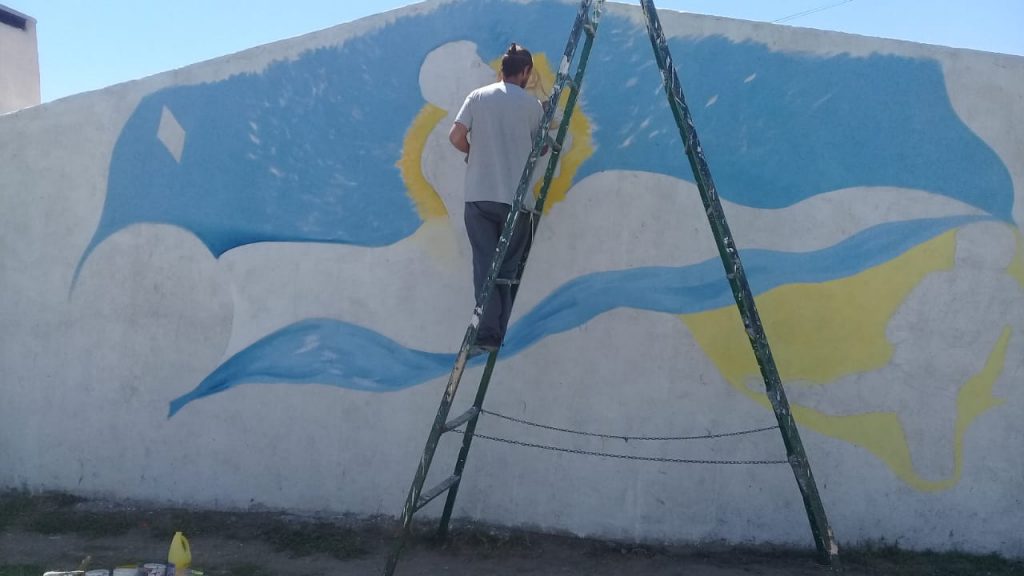 Un grupo de amigos, conocidos como «Los Maradonianos», realizan un mural en homenaje a Diego Armando Maradona por lo que