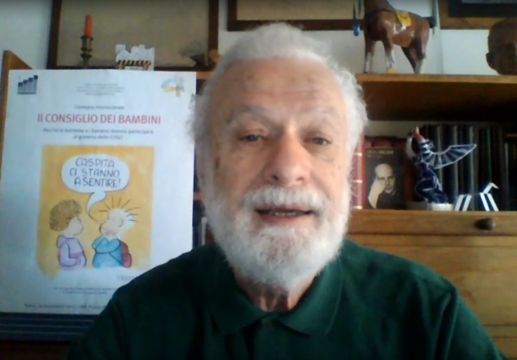 El reconocido pedagogo Francesco Tonucci saluda a la comunidad de Arroyito, y da la bienvenida al Programa “Ciudad de niñas