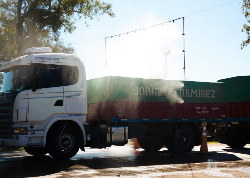 Implementaron puestos de control en los ingresos de la localidad sobre la Ruta 19, que cuentan con arcos de desinfección