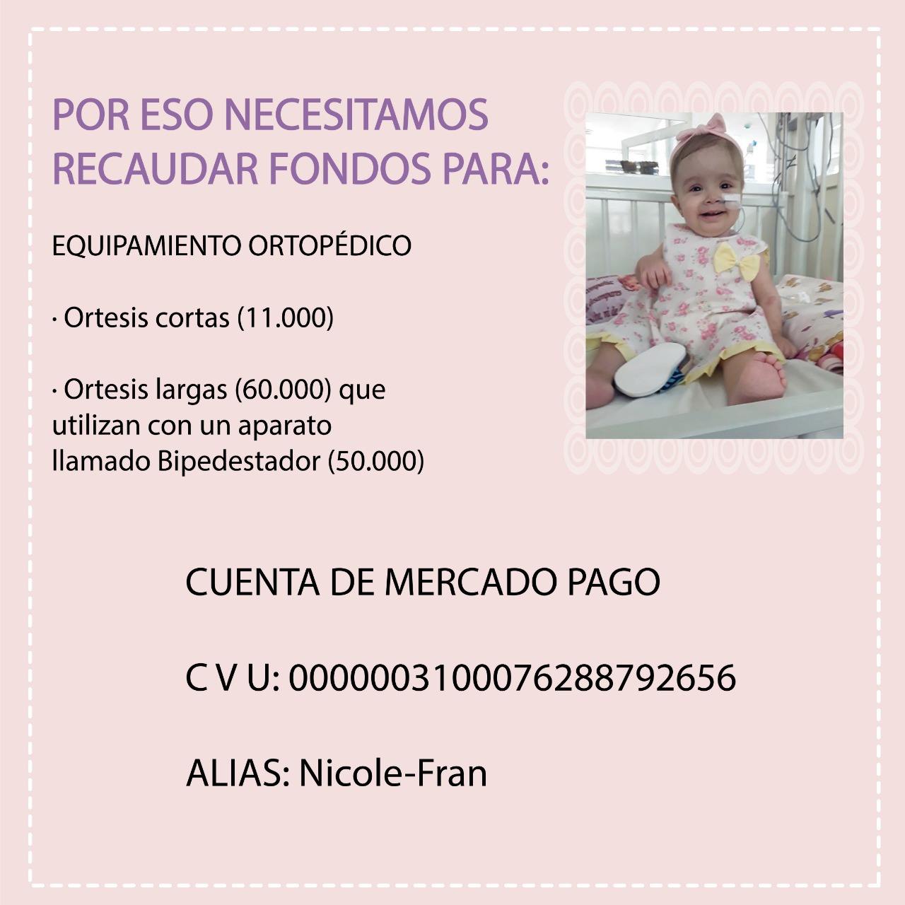 Por este motivo y debido a los altos costos del equipamiento la familia de Nicole necesita recaudar fondos.