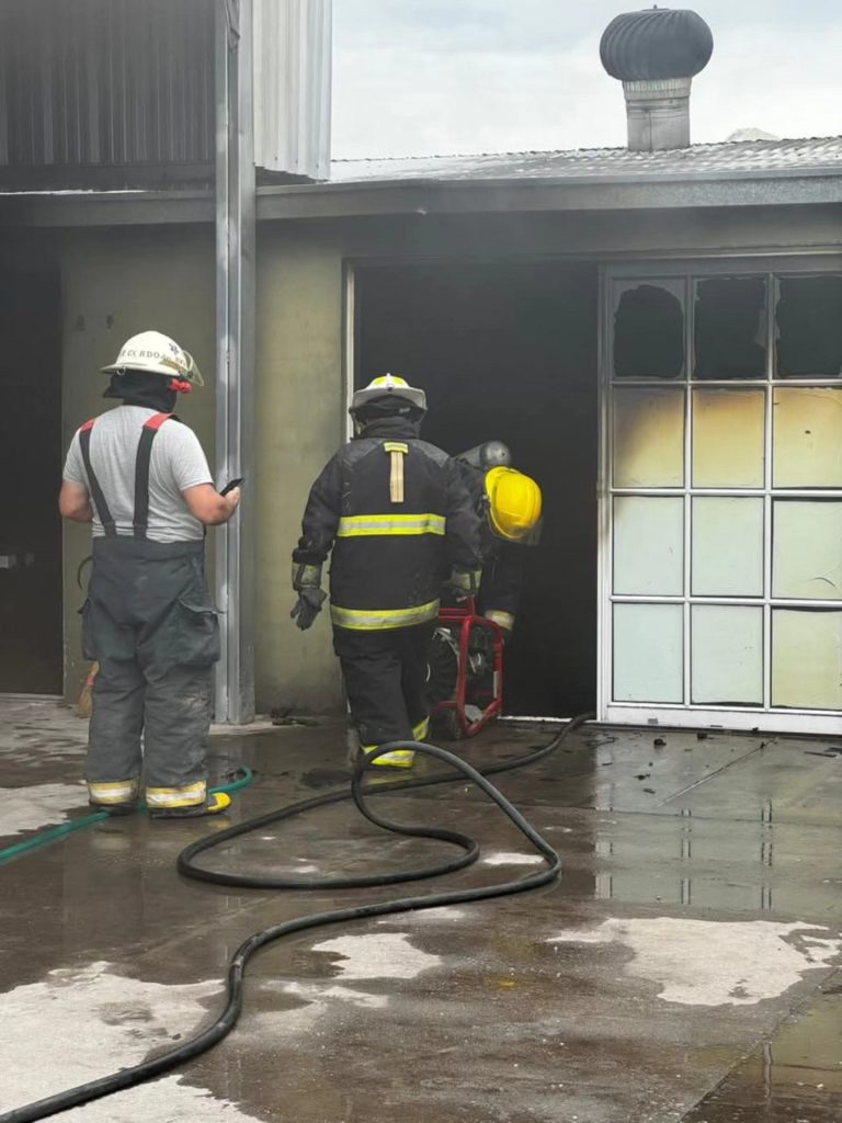 Al llegar al lugar, los bomberos constataron una gran cantidad de humo proveniente de uno de los galpones de la propiedad, por lo que procedieron de inmediato a realizar cortes de suministros y tareas de extinción del foco ígneo.