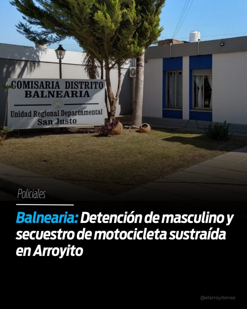 #Balnearia En horas de la tarde, personal policial de la Comisaría Balnearia, controla en la vía pública dos hombres que circulaban en una Guerrero Trip que coincide con las características de una sustraída en horas tempranas en la ciudad de Arroyito. Al controlar la numeración de la misma, los sujetos intentan fugarse de los policías, aprehendiendo al acompañante mientras que el conductor se evade del control para ingresar a una isleta en inmediaciones del acceso Oeste de la localidad. Se rastrilla el lugar y no se ubica al mismo, no obstante se encuentra identificado correctamente, poniendo en conocimiento a la Justicia, expidiéndose al respecto. La motocicleta y el acompañante de 31 años fueron trasladados hacia la Comisaría a disposición de la Fiscalía de Instrucción de Morteros.