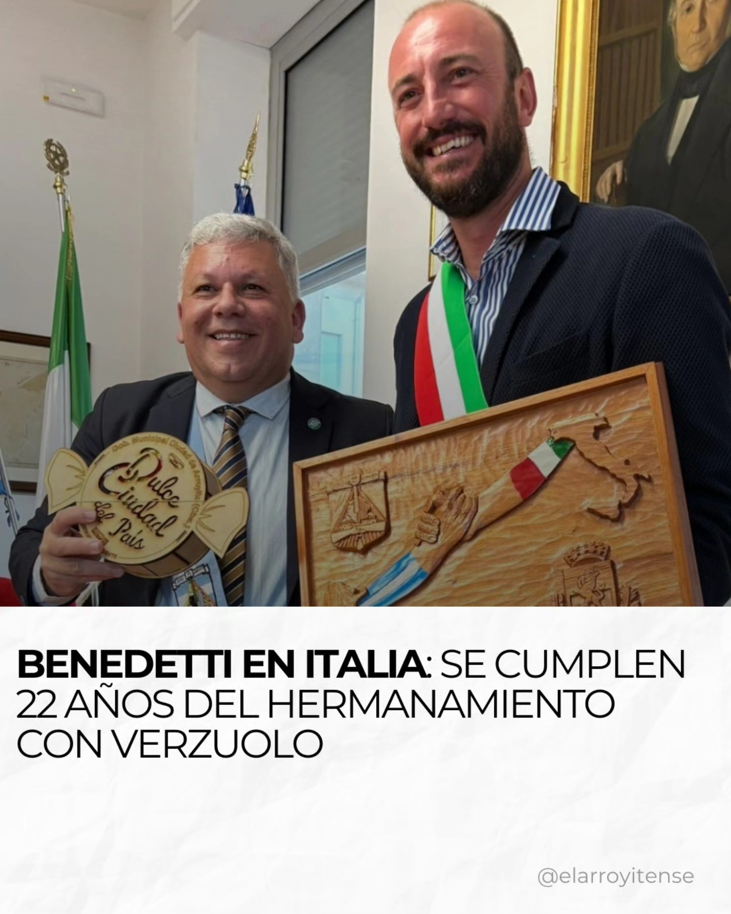 Este 2025 se cumplen 22 años del hermanamiento entre la ciudad de Benedetti y la localidad de Verzuolo, Italia, un vínculo formalizado en el año 2003 y que desde entonces ha permitido fortalecer los lazos históricos, culturales y sociales que unen a ambas comunidades.