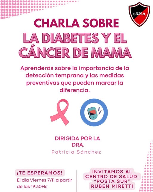 El Centro Vecinal Nicolás Batalla invita a la comunidad a participar de una charla informativa sobre diabetes y cáncer de