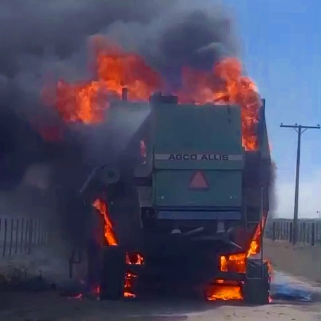 Lamentablemente la cosechadora sufre perdidas totales aunque por fortuna no se debieron lamentar personas lesionadas. Agradecemos a Bomberos La Tordilla
