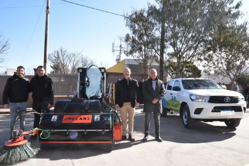 Hoy el Ing. Fabián Violo presentó junto a su equipo de gobierno y empleados municipales la Mini Pala, Barredora y