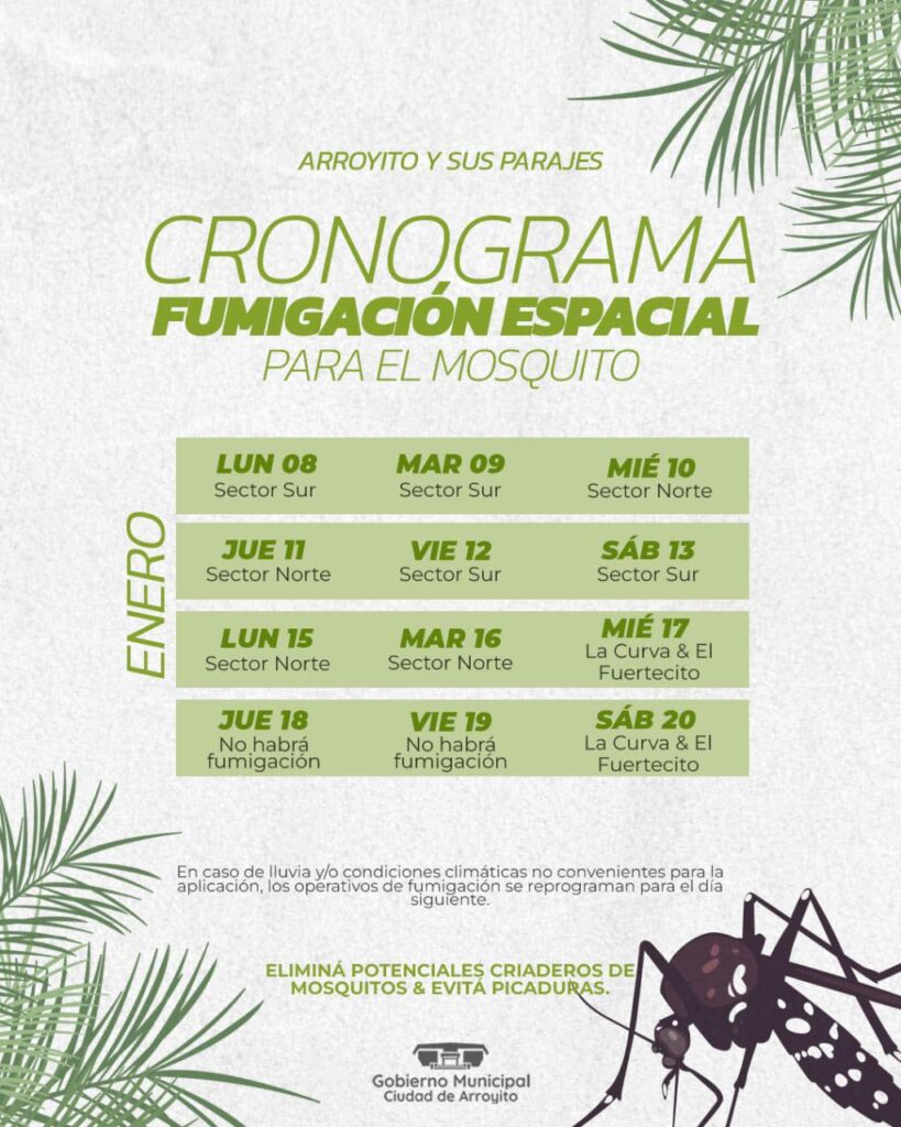 El Gobierno Municipal a través del Área de Ambiente y Energía informa cómo será el cronograma de fumigación espacial contra