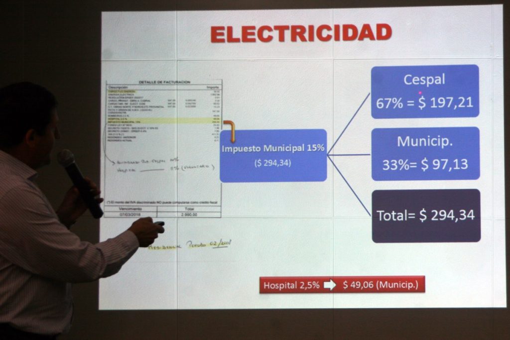 A través de un Power Point, el intendente desglosó el cedulón de energía eléctrica, mediante un ejemplo práctico. El jueves