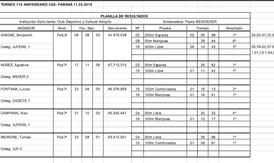 El pasado sábado 11 de mayo de 2019, cinco nadadores del Verde y Blanco de Arroyito participaron en un Torneo en la ciudad de Paraná – Entre Ríos.