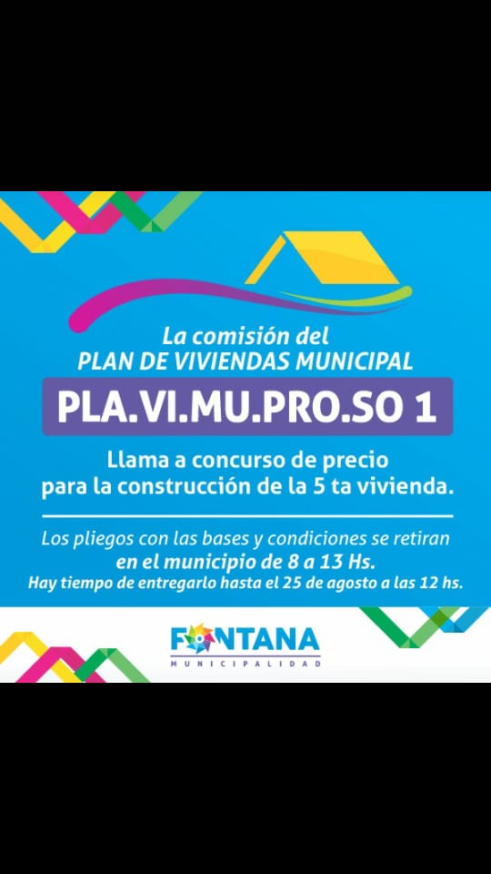 La comisión del plan municipal de vivienda PLA.VI.MU.PRO.SO 1 llama a concurso de precios para la construcción de una quinta vivienda.